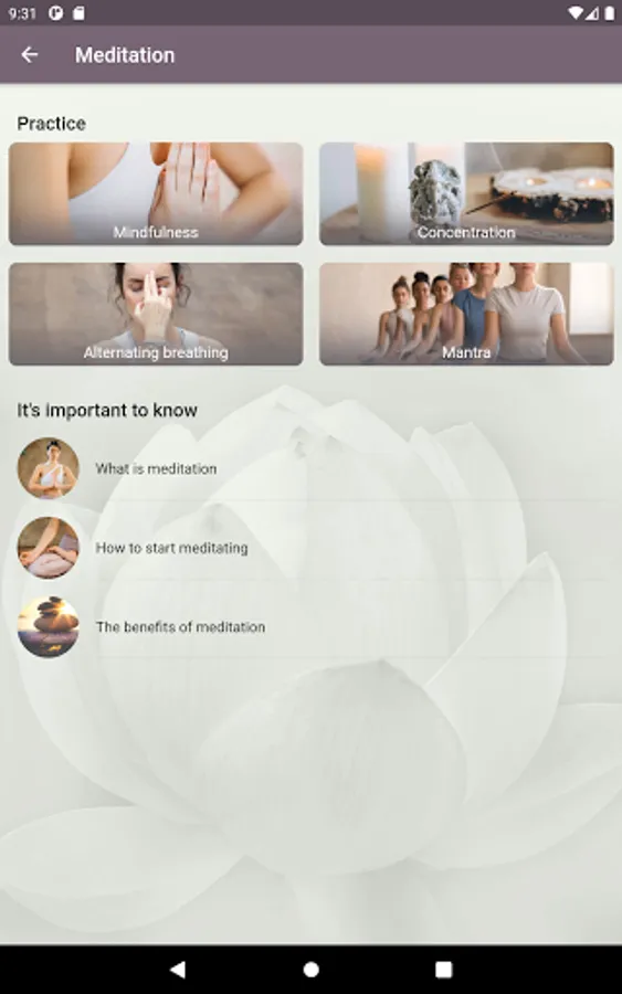 People who regularly practice meditation live life brighter, feel happiness more often, because they are able to see it in ordinary things. Exercises give you an opportunity to accept and let go of negative emotions and feelings, remaining in harmony with yourself. Such exercises teach mindfulness. In the application you will find many useful practices: