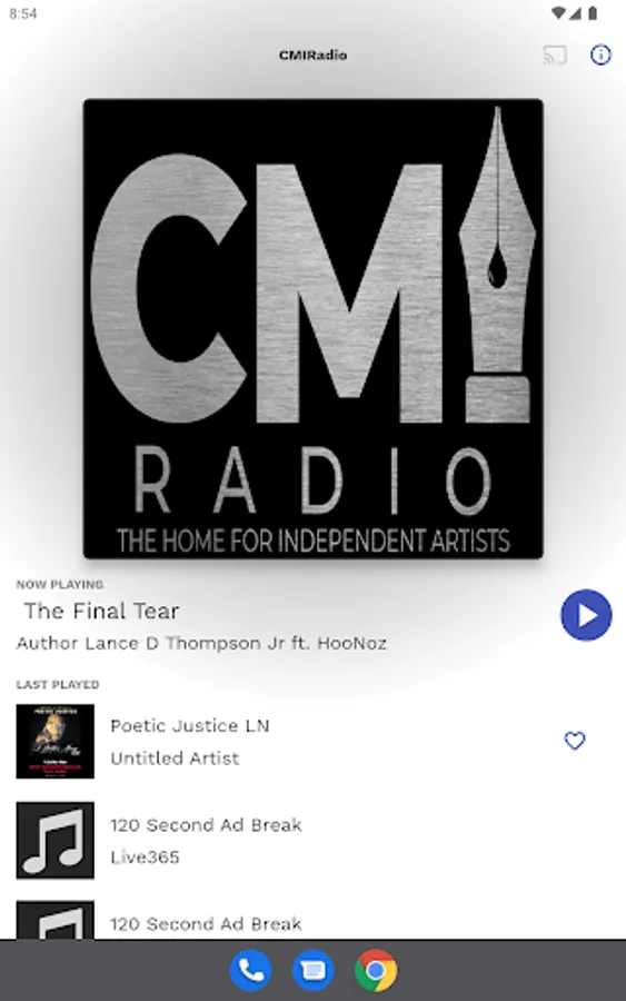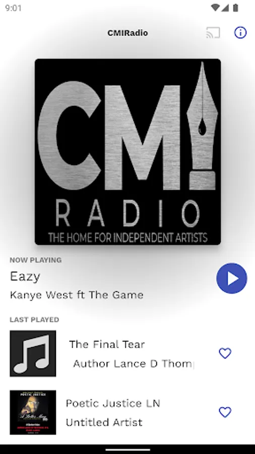 This Android app plays the live stream of CMI Radio - Home for Independent Artists.