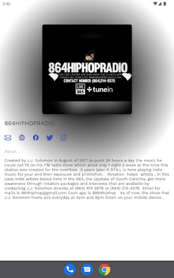 Created by J.J. Solomon in August of 2017 to push 24 hours a day the music he could not fit on his FM radio show which aired only 1 night a week at the time this station was created for the overflow. 5 years later it STILL is here playing indie music for your and their exposure and promotion. Rotation helps artists , in this case indie artists based here in the 864, the Upstate of South Carolina, get more awareness through rotation packages and inteviews that are available by contacting J.J. Solomon directly at (864) 414 2676 or (864) 214-5576 Email for mp3s is 864hiphop@gmail.com Cash app is $864hiphop As of now, the show that J.J. Solomon hosts airs everyday at 4pm and 8pm listen on your mobile device .