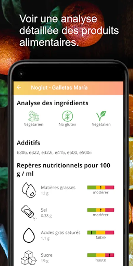 With a simple nutrition score system, the app helps you instantly see if a product contains too much salt, sugar, fat, carbohydrates, and more. Colors rate and mark all important nutritional values and give you a quick overview of the food.