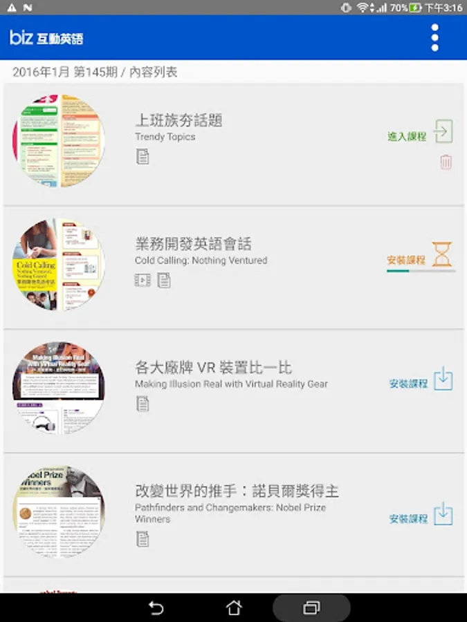 "Biz Interactive English" includes monthly business news, business sessions, Office session, business dictionary, business documents, business success and interviews and other rich curriculum, in addition to excellent analytical business affairs, business information, all session courses are live-action shooting situational videos, plus the monthly TOEIC practice test, let the reader from the most realistic commercial real learning environment, it sounds easy to learn English shadow, face a variety of occasions can be easily expressed in English in the workplace, meetings, presentations, documents dealings everything through English, English is no longer limited job opportunities.