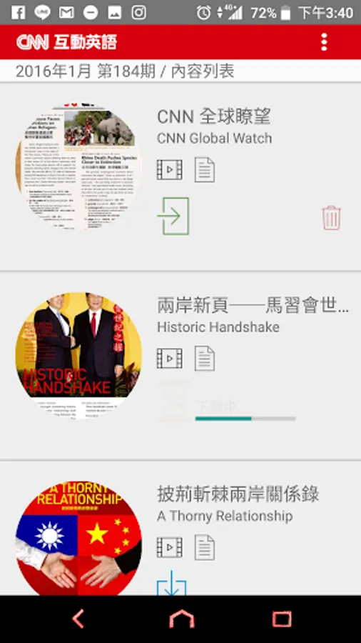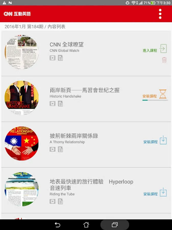 CNN, watched by more than one billion people in 212 countries around the world, uses 23 satellites to report news from around the world 24 hours a day, analyzing industry trends. "CNN Interactive English" is officially authorized by CNN. In 10 major programs such as the Commercial News Center and Entertainment Online, the selected news content is further divided into learning topics such as politics, life, finance, technology, entertainment, tourism, and characters. The professional Chinese and foreign editor teachers join the background analysis and write the learning focus , So that you can truly master the global news and learn English well.