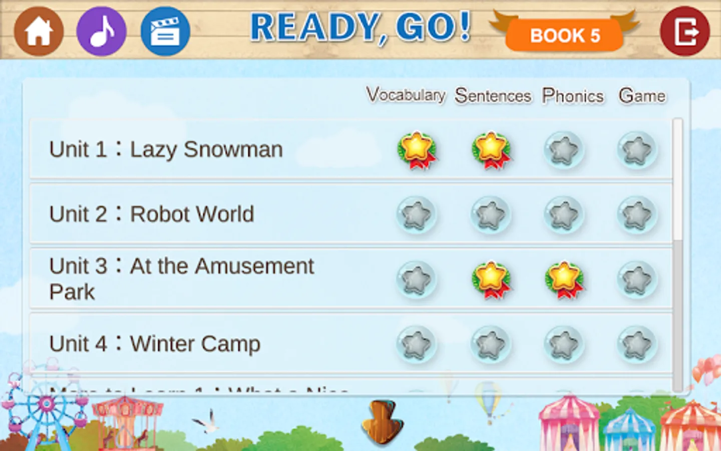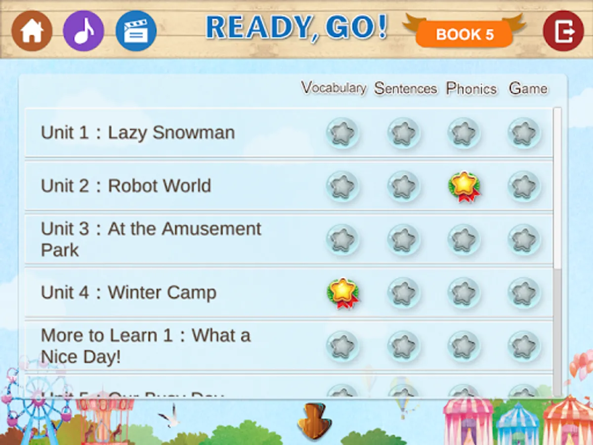 5. Learning record: A yellow asterisk will appear in the subject area after the unit has been studied.