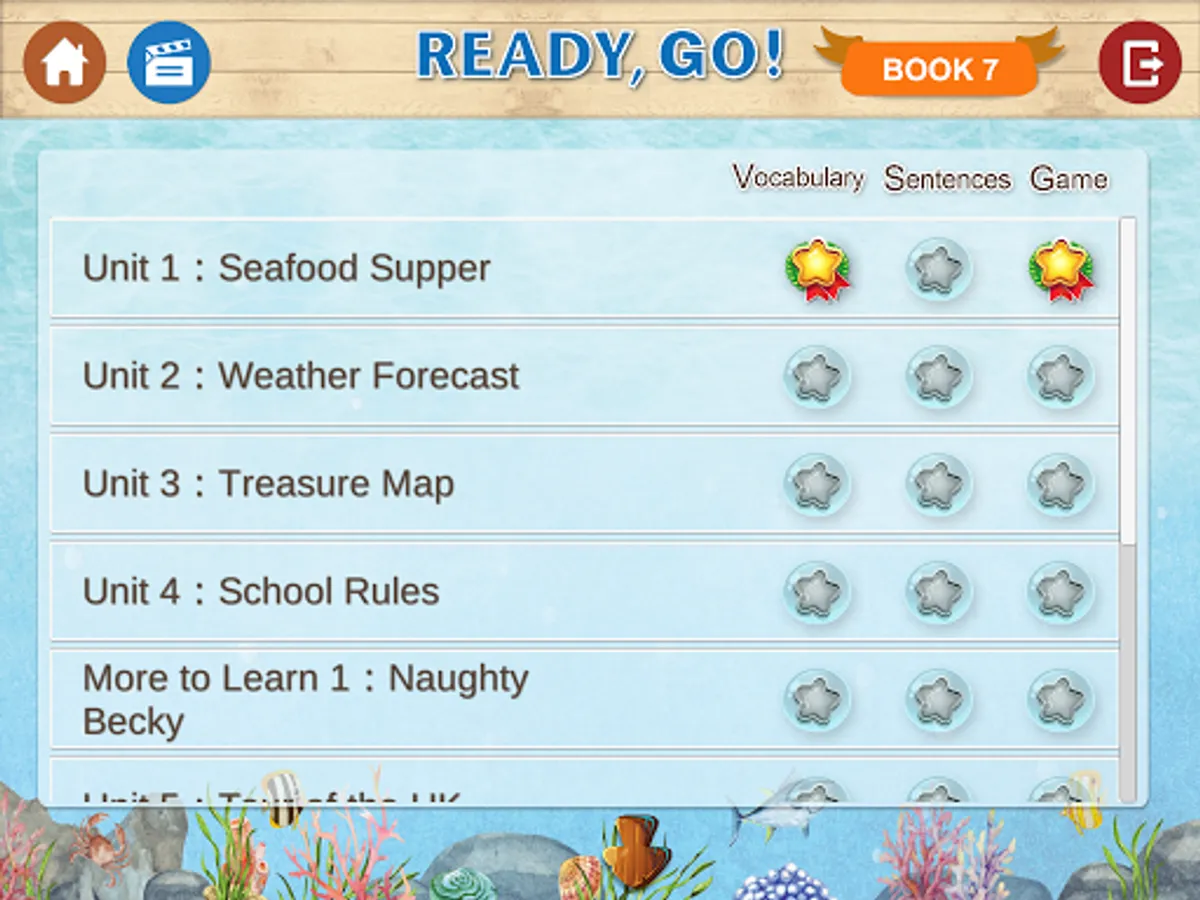 5. Learning record: A yellow asterisk will appear in the subject area after the unit has been studied.