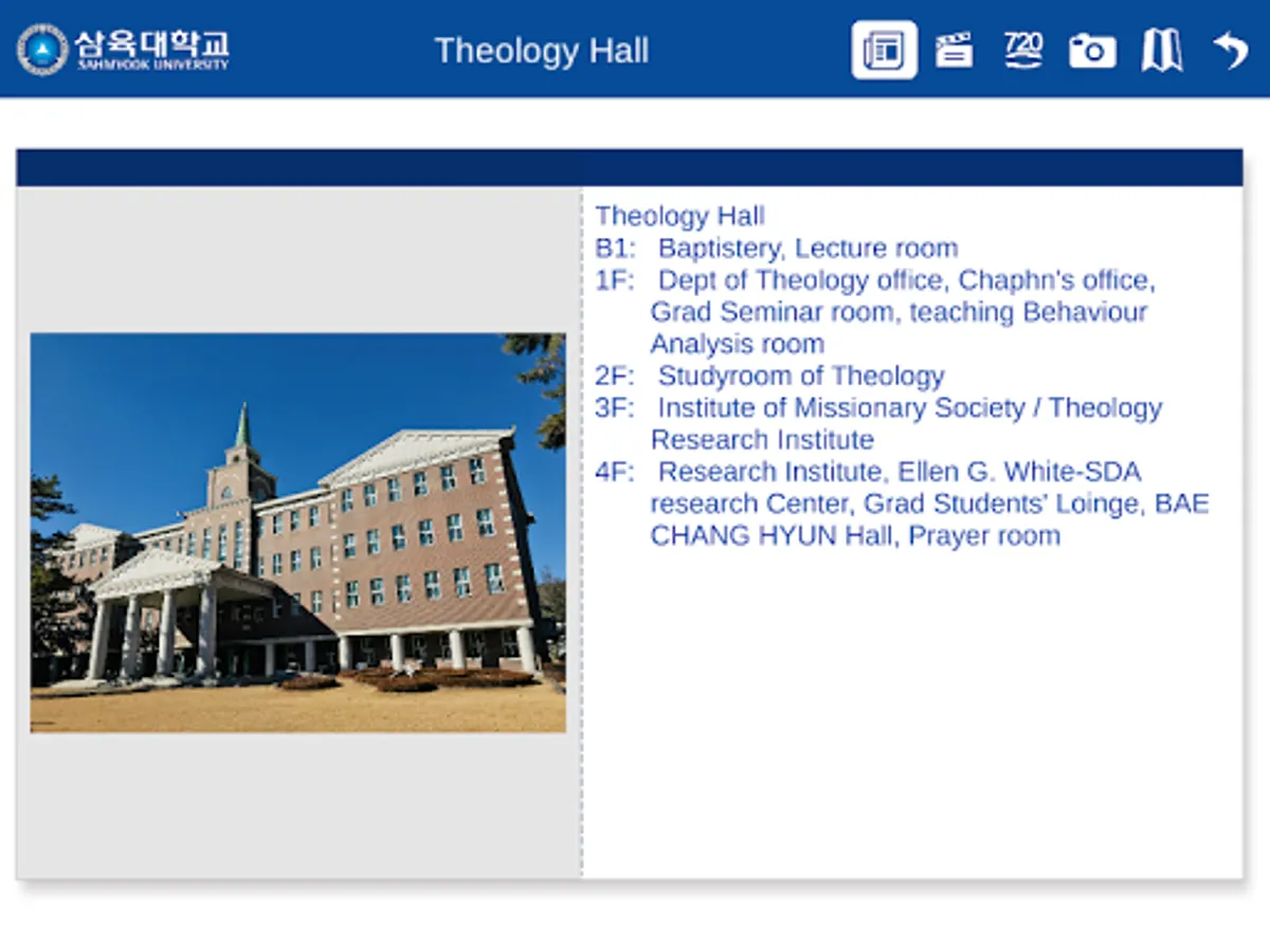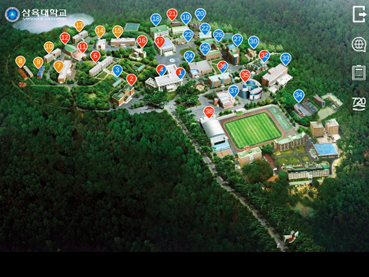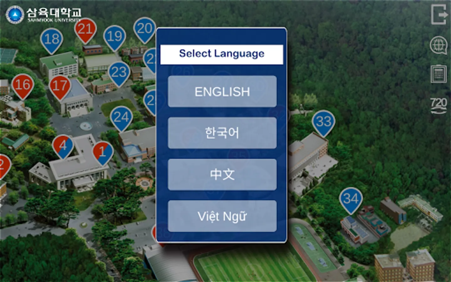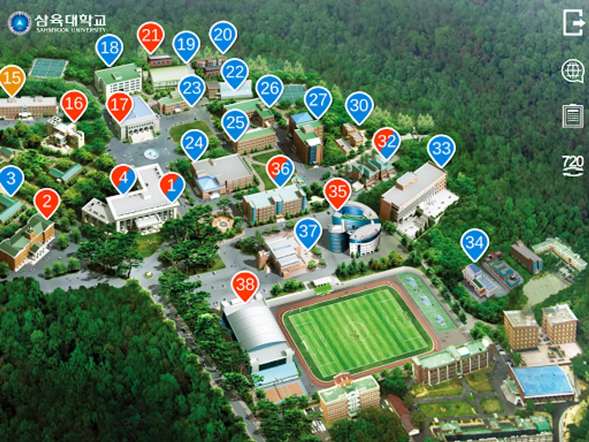 AR Tour App offering freshmen and visitors to get to know the campus, supports by Korean, English, Chinese and Vietnamese languages. There are 34 main buildings in the campus, and are divided into three categories by functions: education, administration and living.