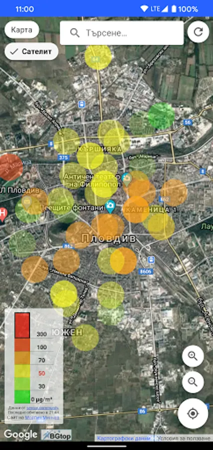 Real-time 3D satellite map with PM 10 and PM 2.5 indicators for the amount of fine dust particles (PM) in the air. See if there is any air pollution at the moment.
