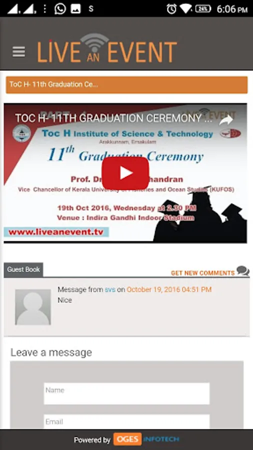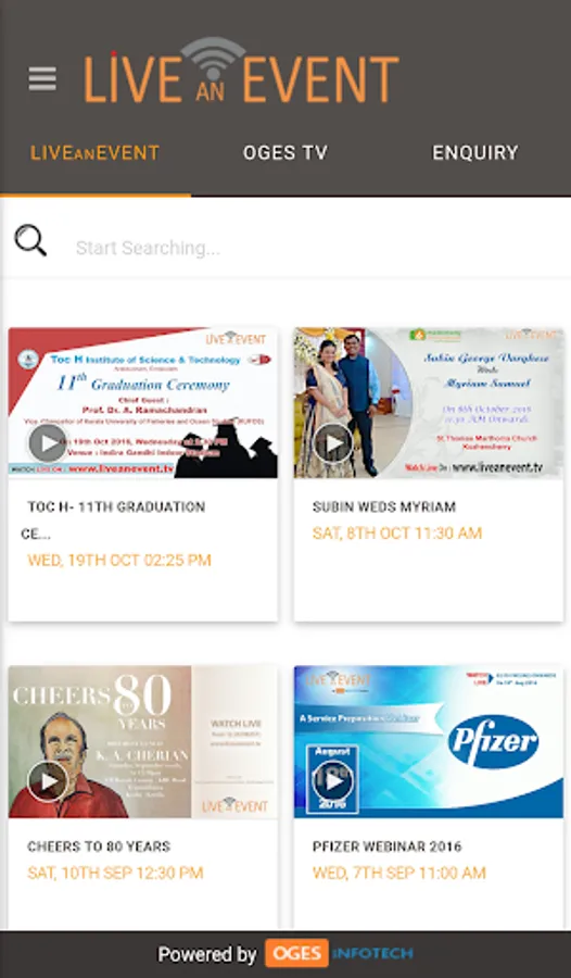 LIVEanEvent is one of the leading live streaming / webcasting solution providers in India, Middle East and Canada. We are a 100% subsidiary of OGES iNFOTECH, one of the upcoming IT Solutions Company in India, Middle East and Canada region.We deliver high quality TV experiences across multi-platforms of media - Smart TVs, game consoles, web channels, smartphones, and tablets.LiVEanEVENT.TV provides multi-camera live streaming production services & consulting for virtually any type of event.