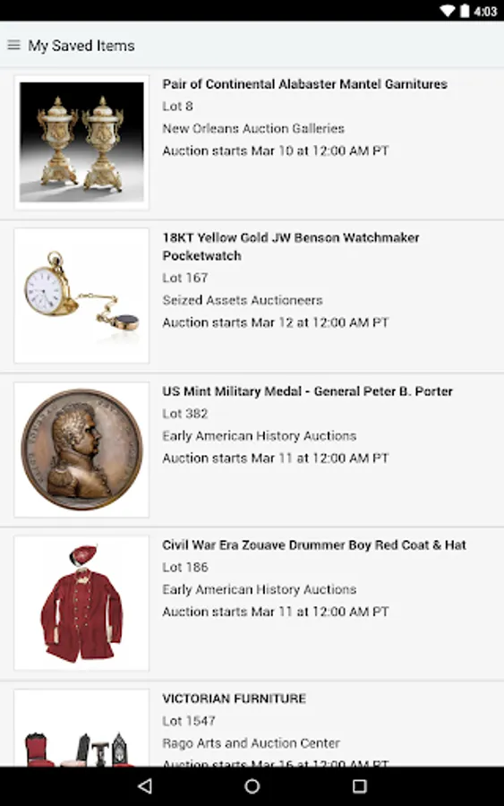 • Bid in auctions from 5,000+ auctioneers (it's like having thousands of auction apps in one)