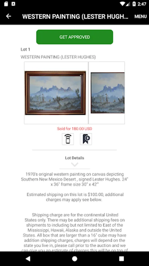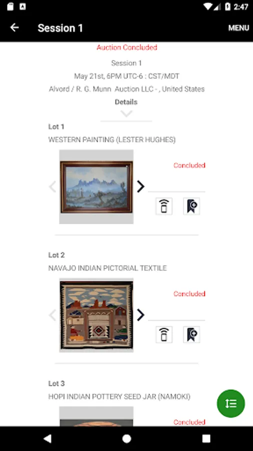 - Browsing of auction catalogs with photos, descriptions and easy use absentee bidding