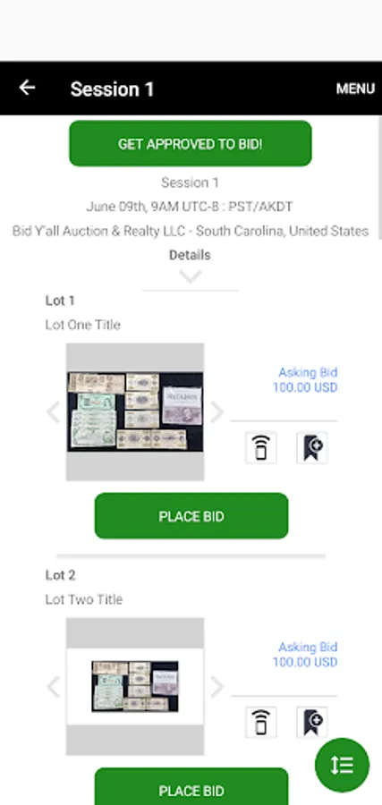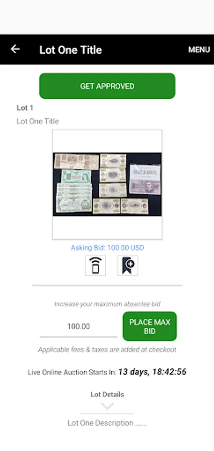 • Browsing of auction catalogs with photos, descriptions and easy use absentee bidding