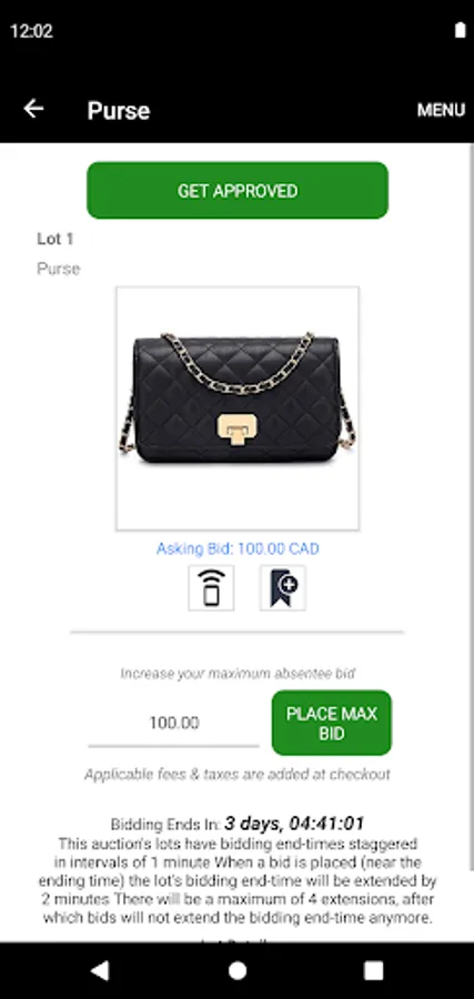 • Browsing of auction catalogs with photos, descriptions and easy use absentee bidding