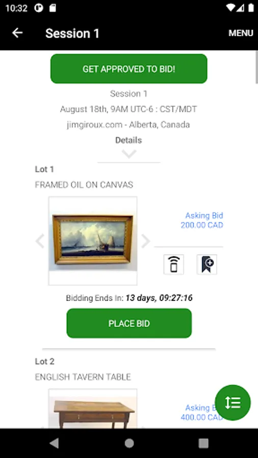 ● Browsing of auction catalogs with photos, descriptions and easy use absentee bidding