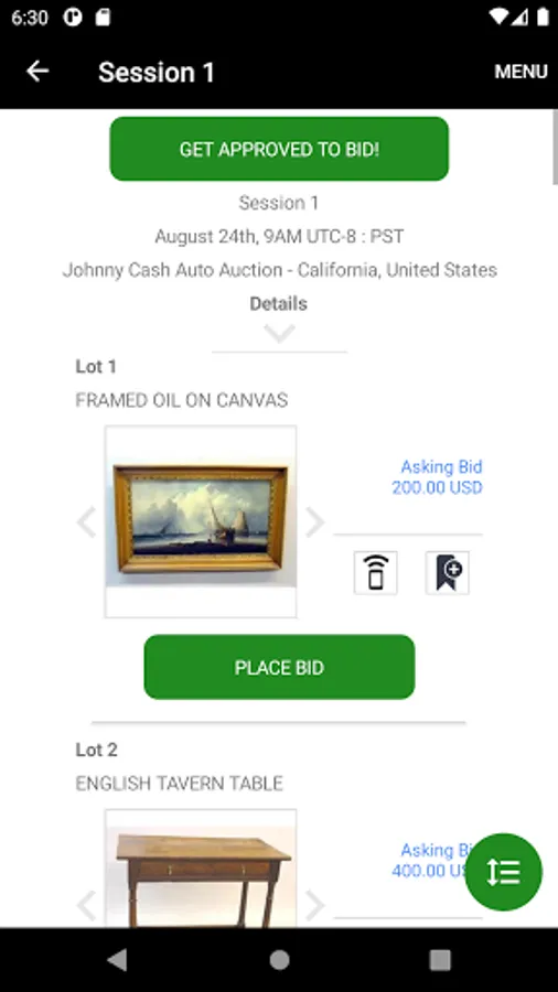 - Browsing of auction catalogs with photos, descriptions and easy use absentee bidding