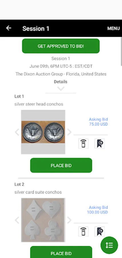• Browsing of auction catalogs with photos, descriptions and easy use absentee bidding