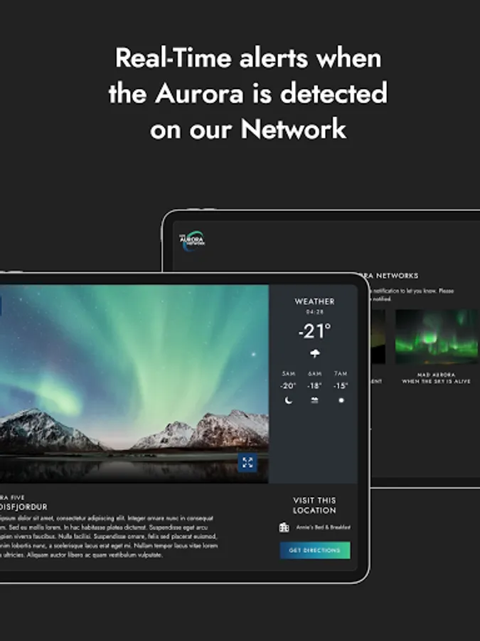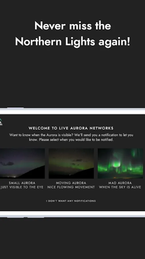 Unlike all other alert apps in existence, which rely on NOAA ‘space weather’ forecasts that requires experience to use, and is often old data, Live Aurora Network sends out real time alerts based on what is actually seen in the sky, we send alerts based on the visual detection of aurora from our Network of Cameras. currently in Iceland, Norway, Alaska, USA, Sweden