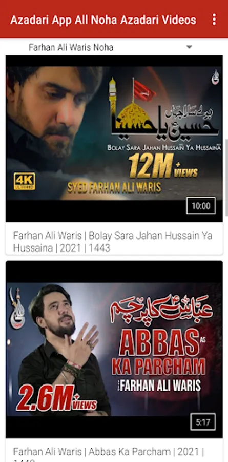 this app inculdes all type of famous noha khan and other majlis videos you must enjoy this app please support us Live Azadari Network.