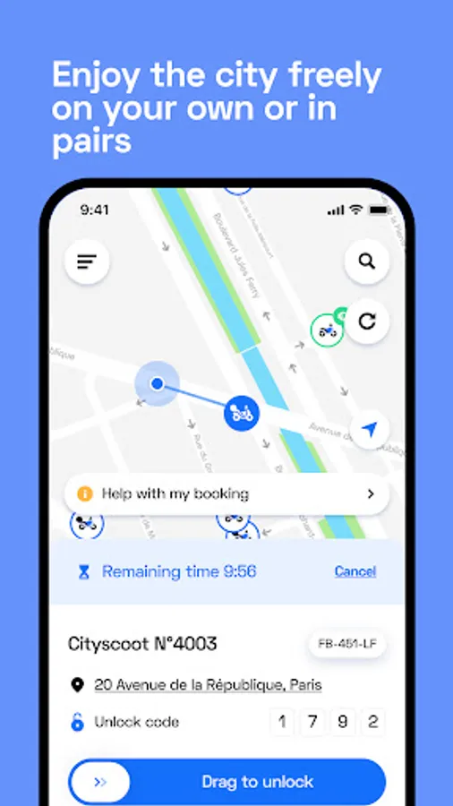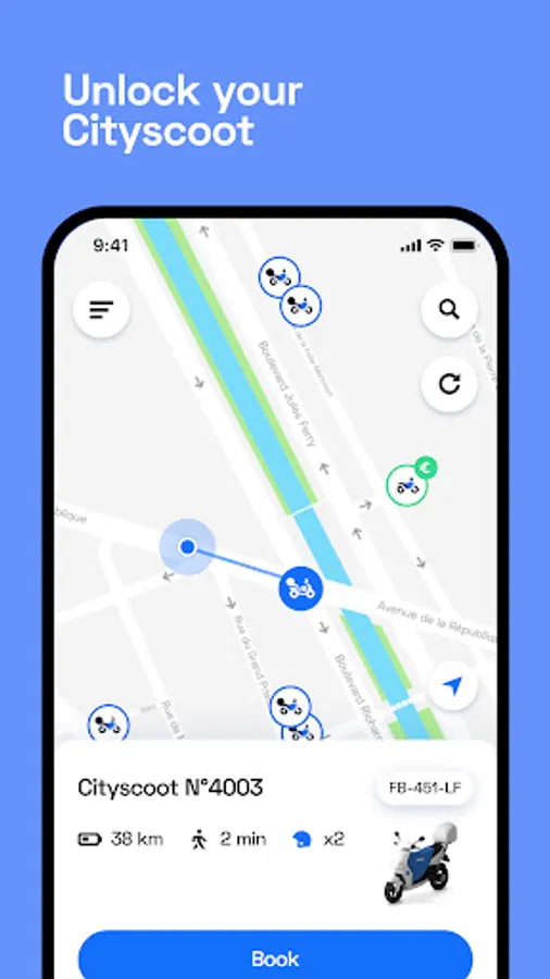 Thousands of free-floating electric scooters are waiting for you in the Cityscoot app 24/7.