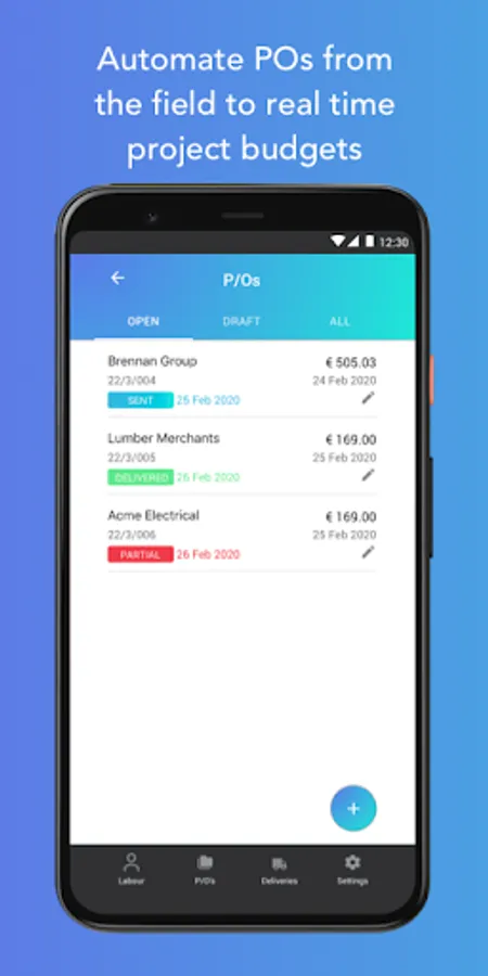 Log Purchase Orders, Track Employee Time and Log Supplier Deliveries in real time.