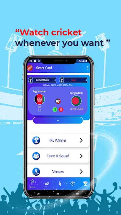 Download the app and enjoy Cricket with Cricket Score Card App.