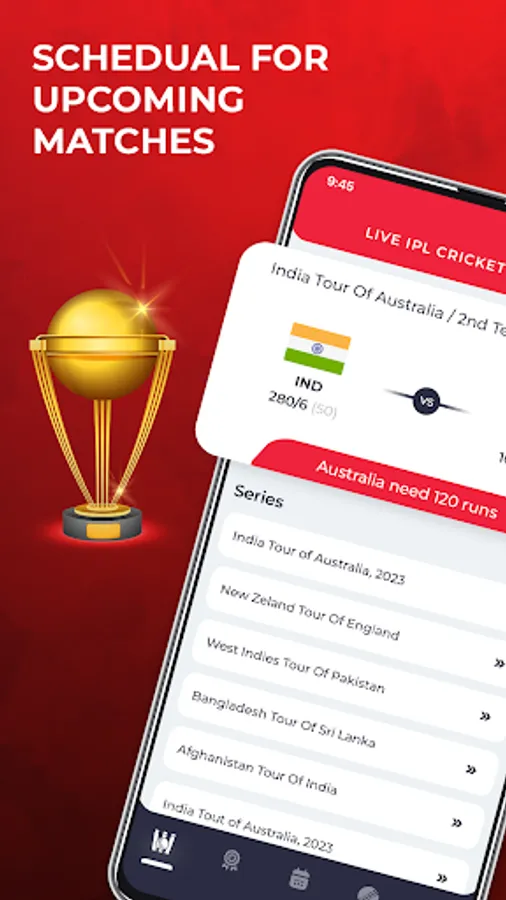 📅 Easy to find out from the schedule page with Current live matches in progress, Completed, International and domestic match categories.