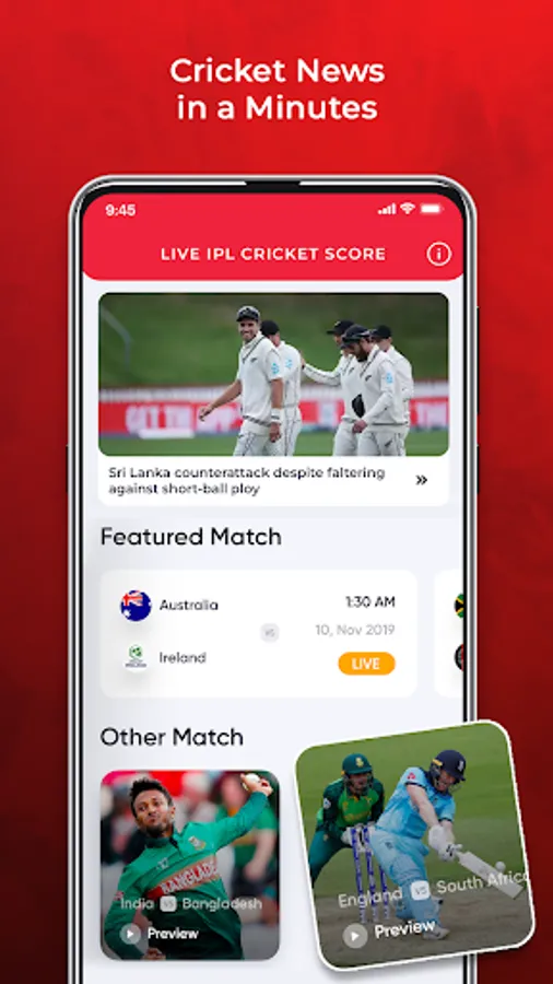 🏏 Fast and accurate live score updates with insightful ball-by-ball commentary with graphical highlights and wagon wheels on one of the best and fresh cricket apps.