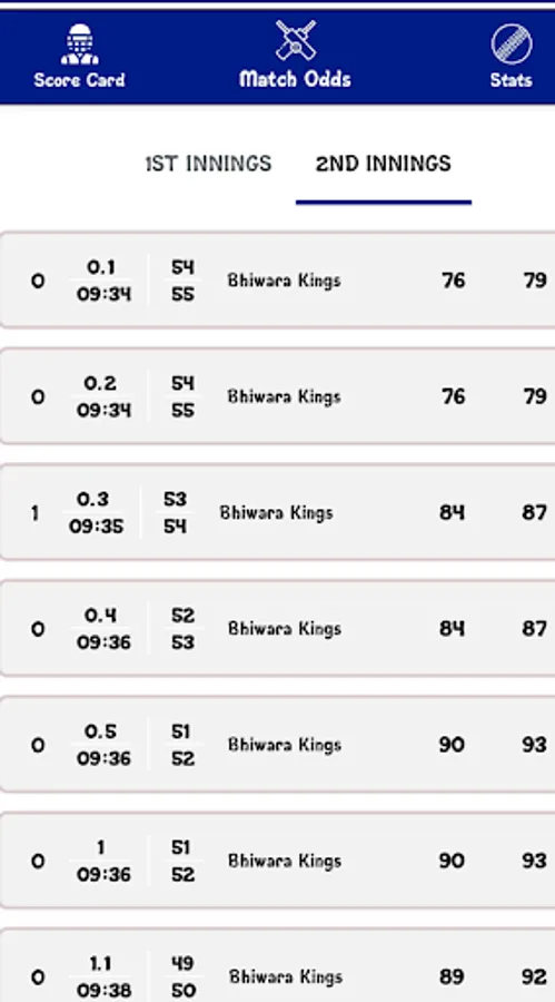 After every match end, we save the final result Cricket scorecard of the match with both teams' final scores and stats.