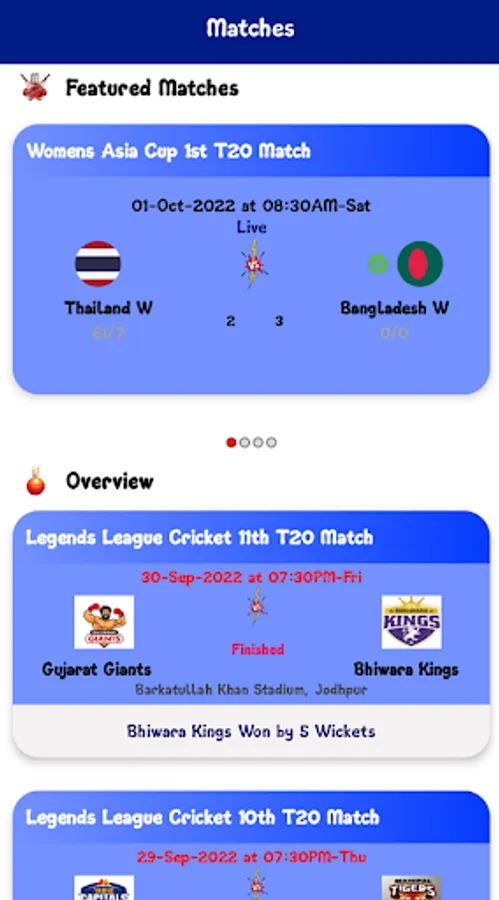 You can see the last Cricket match result in the app and you will also be able to check today and last match 'player of the match' or 'man of the match' in the app.