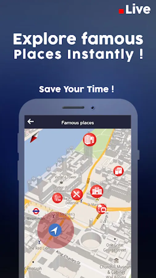 Live Earth Map - World Map 3D, Satellite View is a GPS based application to serve you Live Maps, Live Street views, GPS Navigation, Driving Directions and many Famous Places with Satellite views.