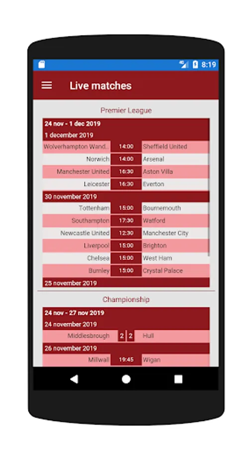 - Live scores: follow live matches through online scores and enjoy being updated with everything that happens in England soccer. Service similar to that offered by other applications such as Roja Directa