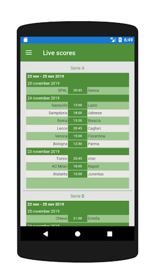 - Live scores: follow live matches through online scores and enjoy being updated with everything that happens in Italian football. Service similar to that offered by other applications such as Roja Directa