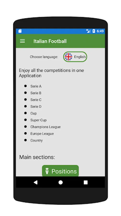 With this application you can follow live matches of professional soccer competitions in Italy. You can also follow the most important international soccer competitions in Europe. The Italian soccer application provides all the relevant information: standings, scorers chart and more.