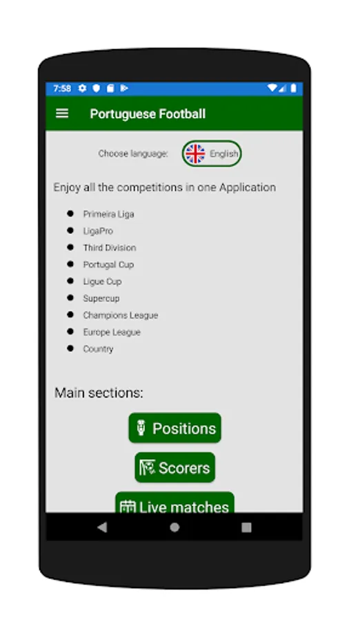 This Portuguese Soccer application allows you to follow all Portugal soccer matches live. It has all the most important competitions in Portugal, as well as international tournaments at European level and the Portuguese national team matches. Enjoy all the information online: standings, scorers chart and much more.
