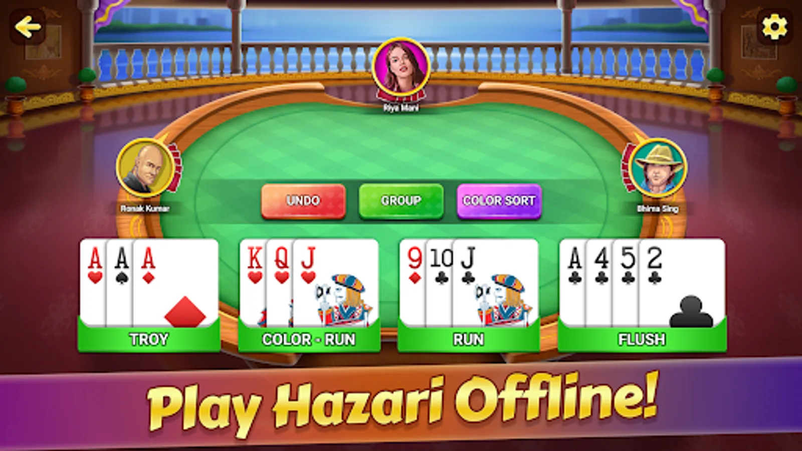 Our Hazari card game has very special features .You will have very challenging BOTs here and also you can challenge random players. We have Sort Option that gives you hints to make your best leads . We have an Individual Card Sector System where you can easily track your card sequence.