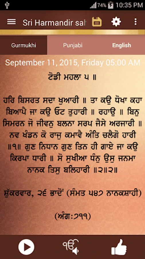 - Hukamnama in Punjabi, Gurmukhi and English language.