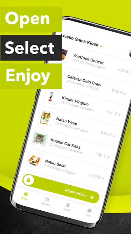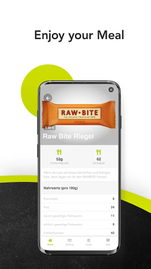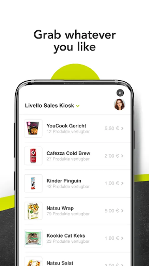 The Hungy Club app shows you at any time of the day which delicious and balanced dishes are waiting for you in your smart kiosk.