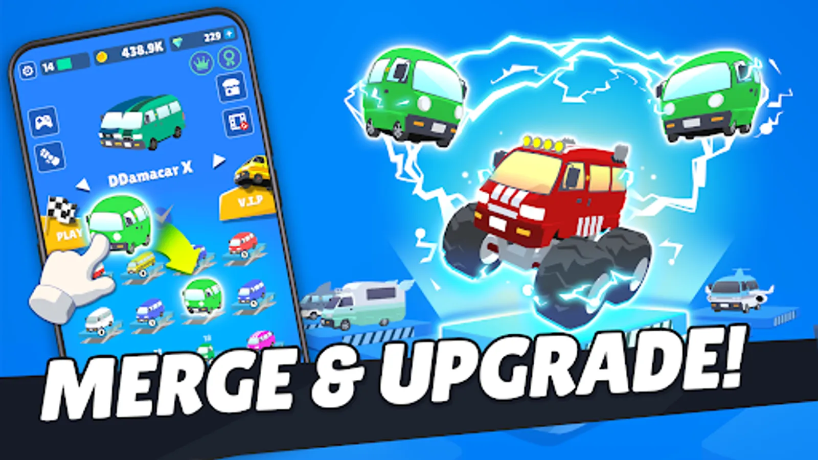 Merge two cars of the same type to upgrade them into a new car.
