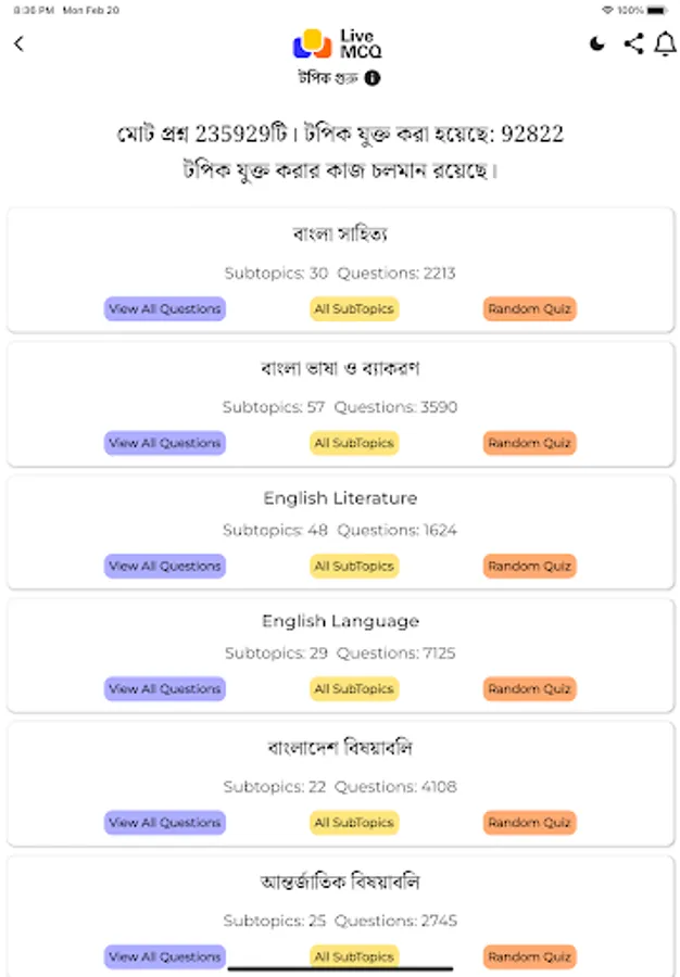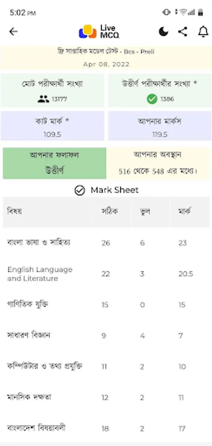 BCS preparation and BCS LIVE model test with Live MCQ™ Android App.