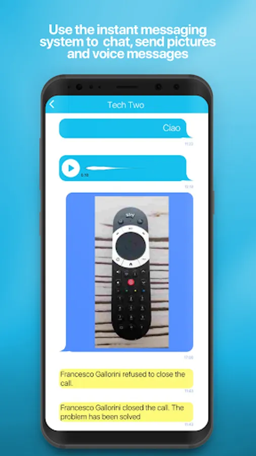 Photos, notes, voice messages and intervention details can be added at any time with the same ease of an instant messaging chat.