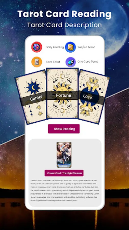 ♦ Tarot Card Reader: Get your tarot card reading about love, relationships, finances, health, etc. Simply choose your card and get tarot spreads for guidance. Read your Daily Tarot, Love Tarot, Health Tarot, Money Tarot and One Card Reading. Ask about tomorrow today!