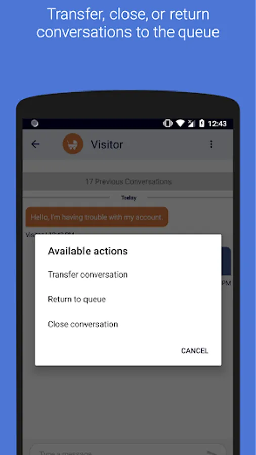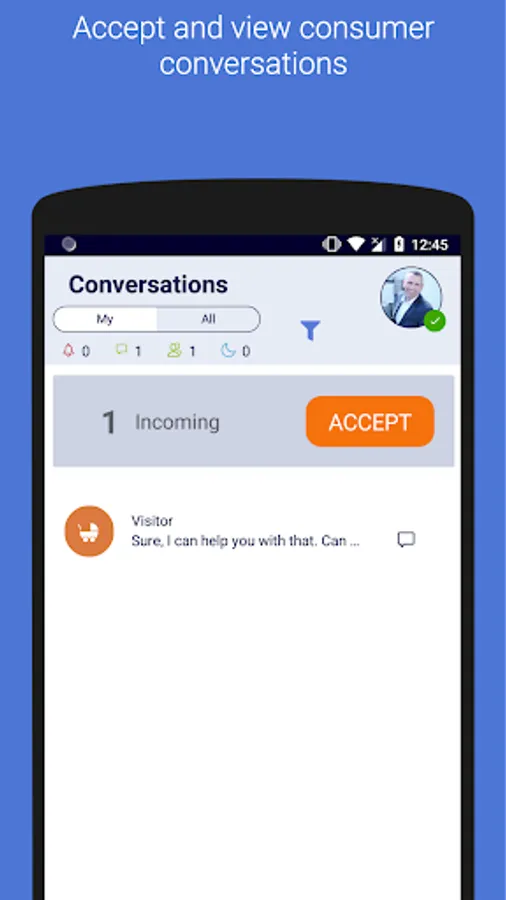 The LivePerson Agent App provides real time messaging between you and your consumers anytime and from any location.