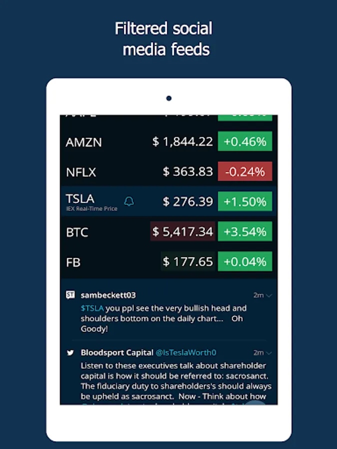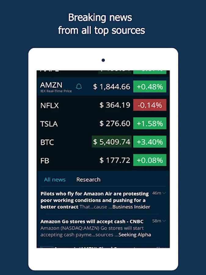 LiveQuote is hands down the fastest way to view all relevant information, including stock news, on your investments & is the most comprehensive stock tracker app! It features a split-screen that helps you to view market data & other related crucial information like real-time price, stock market charts, stock news, tweets, research & ratings, on a single screen!