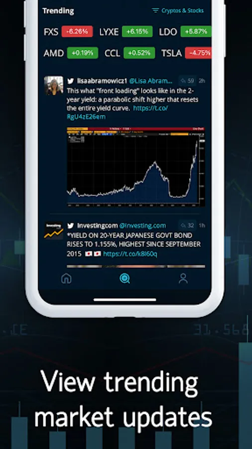No more juggling through apps and screens to get all the information you need. Now view all relevant information on a single screen! LiveQuote has designed a split-screen that displays market data and price charts, news, tweets, equity research and ratings by top performing analysts & more all on one screen. Select the stock/crypto you want information on, and leave the rest to LiveQuote.