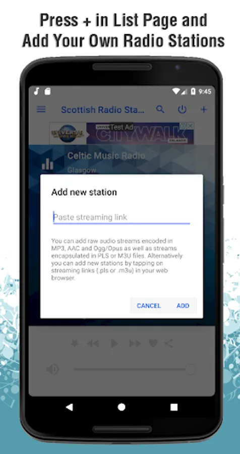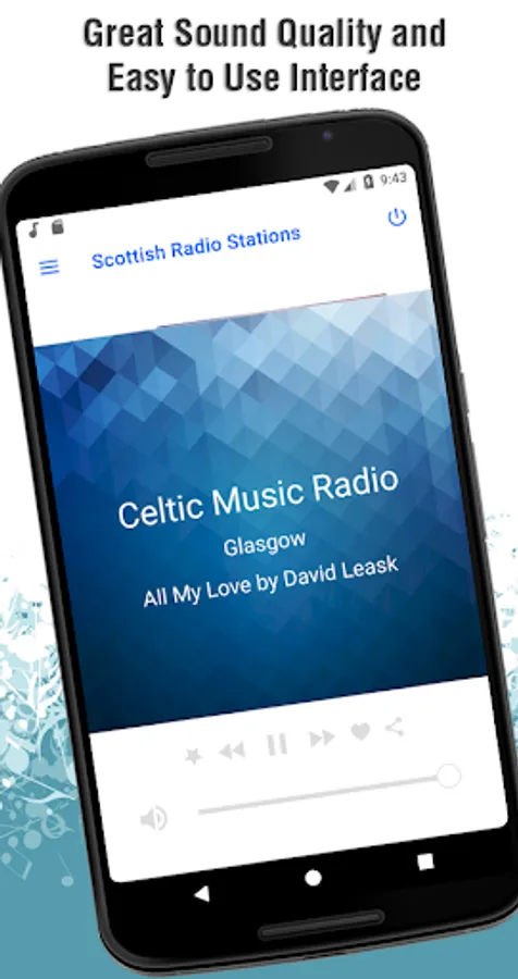 Welcome to the Scottish radio stations app. We have collected the most popular Scottish and Celtic radio stations from all around the world. Listen them with just your phone and internet connection from anywhere in the world. If you like bagpipes or fiddles, then you have come to the right place! A lot of our listeners find the music helps them through the work day or to help them fall asleep while listening our app. Millions of people around the world listen to Celtic tunes which can calm and relax everyone from a tiring day or serious life problems that cause stress and discomfort. Enjoy unlimited free music streaming with great artists and popular music bends. Our mobile radio app is good way to be connected with rest of world, to hear their music, language, etc.