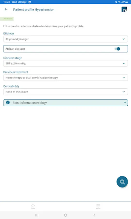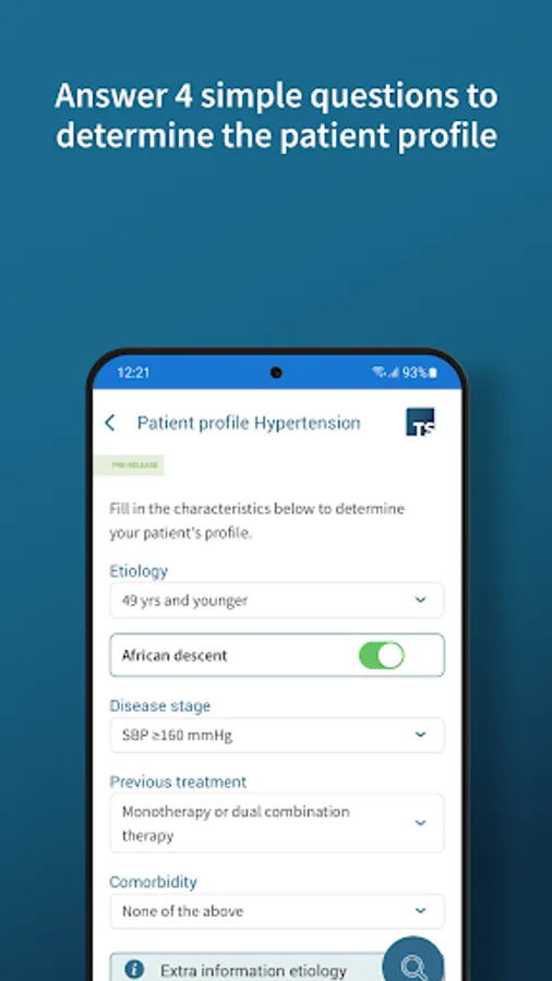 First you enter the requested characteristics of your patient by answering 4 simple questions about etiology, disease stage, previous treatments and comorbidities. Based on this, a profile of the patient is determined. The app then shows an overview of all registered treatments for that specific patient profile, based on frequently updated study results. For each therapy you find information about effectiveness, possible adverse events and costs.