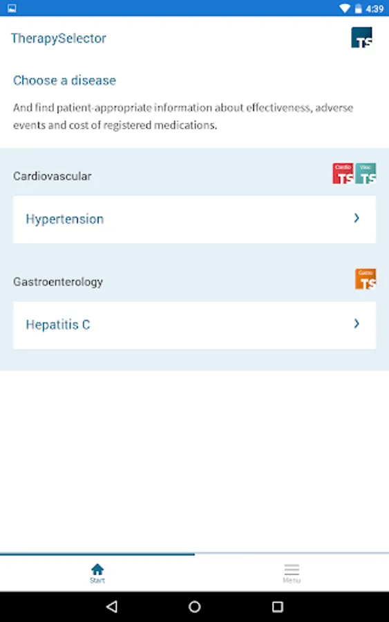 TherapySelector supports you as a physician to easily and quickly choose a data-based, personalized treatment for hypertension and hepatitis C for and with your patient during consultation hours.