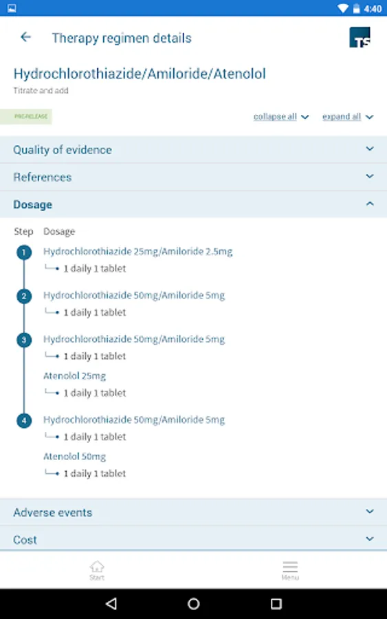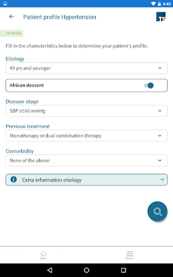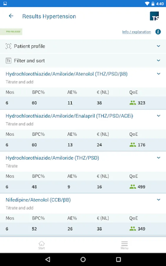 Recently, we added the hypertension module as a pre-release. You can already use this module in practice, but more data is needed for a more complete overview of therapy choices. We want to already introduce a new system of information presentation about therapies, for physicians.