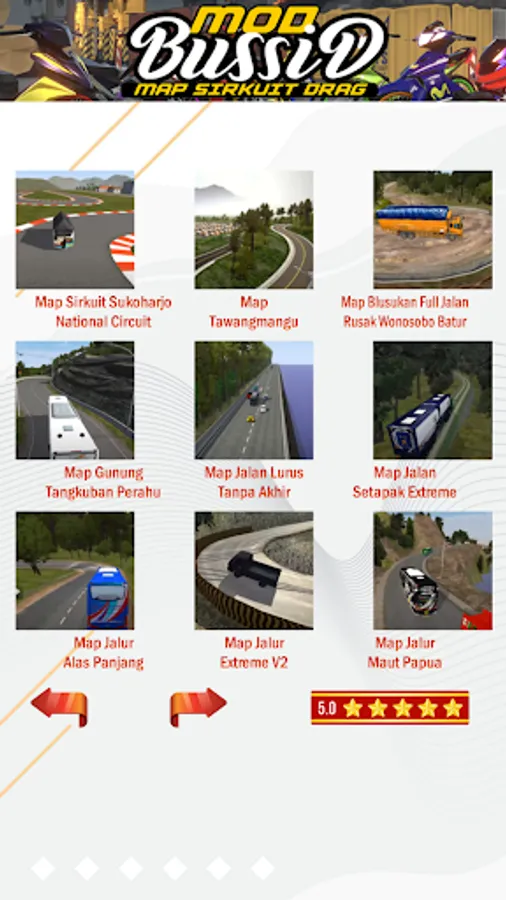 You can also find a variety of unique bussid mod circuit roads such as the new cool drag circuit mod with the craziest modifications. Then there is the asphalt mod for the Thai drag circuit, typical for the country of elephants. Then there is the bussid map of the longest drag circuit in Indonesia which is exciting. There is also a cool bussid racing arena mod map.