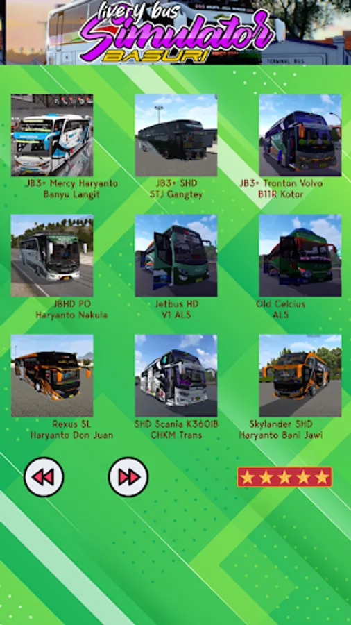 This application also provides a variety of archipelago basuri bus simulators. There is a new telolet basuri livery collection for you telolet basuri bus livery lovers. We have a great collection of the most famous basuri piano simulators. There is also a bussid basuri v3 livery which is much sought after and also the coolest, namely bus simulator basuri 4. Most recently there is a cool collection of bus simulator basuri 5. Apart from that there are also various telolet basuri simulators that you will find in this application.