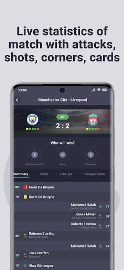 Live scores is an online football match application where you can see all the matches of the day, details of live football matches league standings.