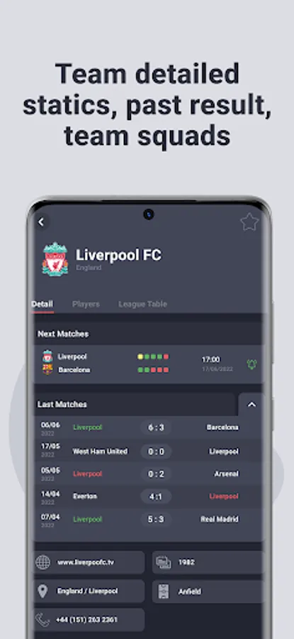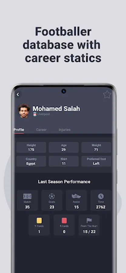 With the live scores mobile app, you can follow the list of football transfers, football player career, statistics, injuries and player transfers.